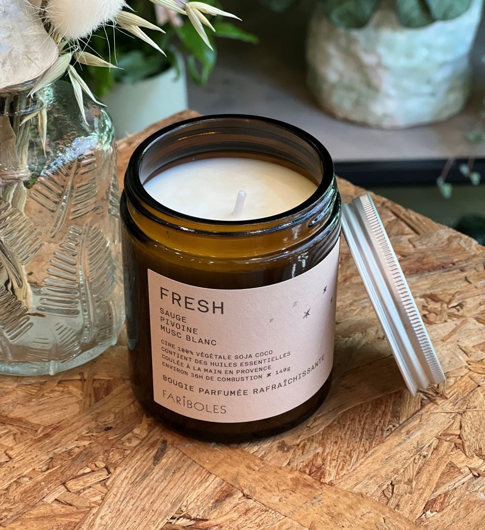 Bougie Fresh par Fariboles, fabrication française et artisanale.